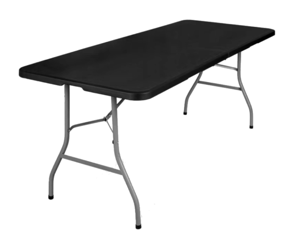 Oferujemy wynajem praktycznych czarnych stołów cateringowych 180 cm. Stoły są lekkie, a dzięki funkcji składania zajmują niewiele miejsca i są wyjątkowo wygodne przy przenoszeniu. W cenę kompletu został wliczony czarny pokrowiec.